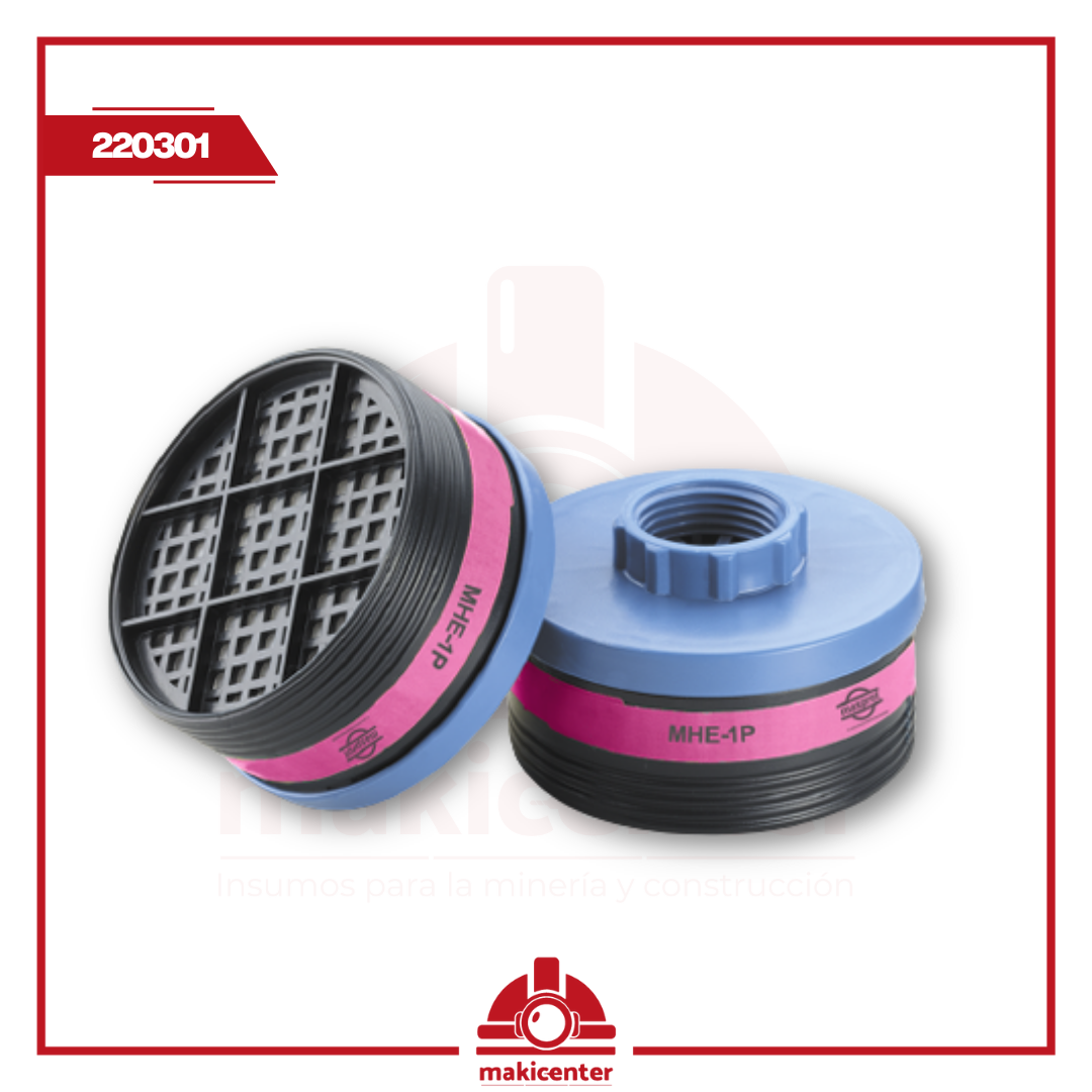Filtro plástico P100 contra todo tipo de particulados (sólidos, acuosos y aceitosos) y con ajuste de rosca.